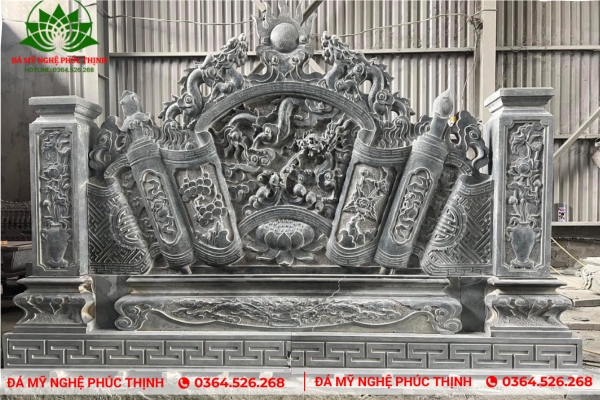 Cuốn Thư Đá Xanh Đen Chạm Rồng